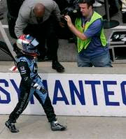 So Danica gets in a fender bender….and starts to walk over to start a fight with Ryan Briscoe’s team and security breaks it up. Hilarious.