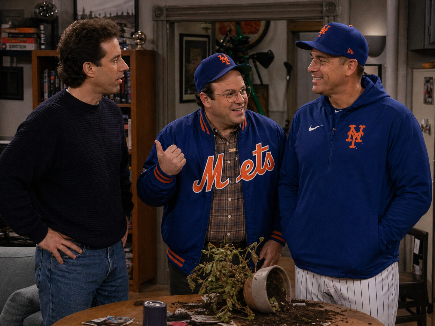 STEVE enters in a Mets cap, overly upbeat. Behind him is CARLOS. smiling like everything in life is going perfectly.