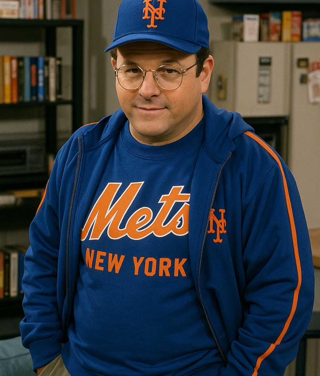 Jerry is on the couch sipping coffee, calm, relaxed. It’s clearly a beautiful day outside. Steve bursts in, energized, wearing Mets gear.
